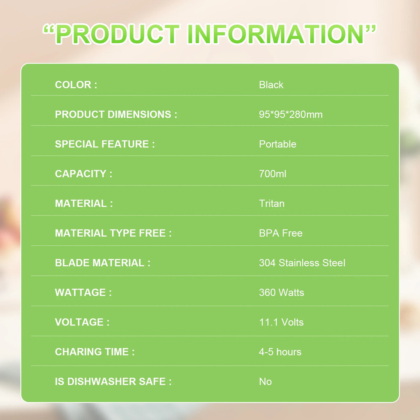 About the Product: 700ml capacity for fresh fruit juices, shakes, and smoothies USB rechargeable for portable, on-the-go use Multifunctional blender...